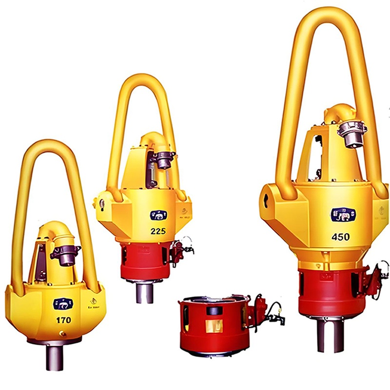 A Swivel is a mechanical device used on a drilling rig that hangs directly under the traveling block and directly above the kelly drive, that provides the ability for the kelly (and subsequently the drill string) to rotate while allowing the traveling block to remain in a stationary rotational position (yet allow vertical movement up and down the derrick) while simultaneously allowing the introduction of drilling fluid into the drill string.